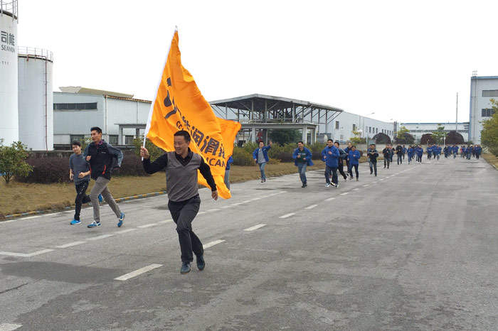 ? ? ? ?下午15:30,公司領導帶頭在橫幅上簽名,參加活動的員工紛紛簽名并寫下祝語,有祝公司業績蒸蒸日上,也有希望個人工資翻倍、身體倍棒、吃嘛嘛香等不同的寄語。隨后進行的迎新跑步活動將氣氛推向高潮。員工們意氣風發,迎著新希望邁步向前沖,個個以勝利手勢沖向終點。