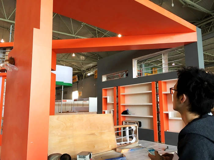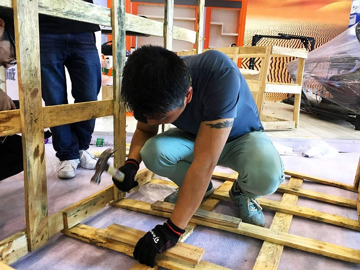 4.16,搭建開始。成都的工人和和氣氣,慢悠悠,負責搭建的小伙伴,一點也不敢放松監督。