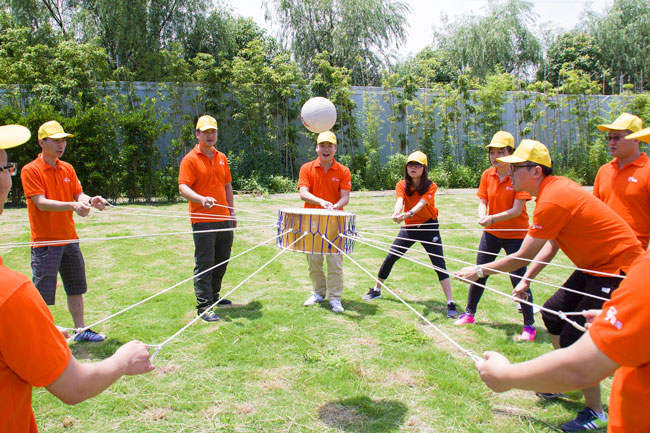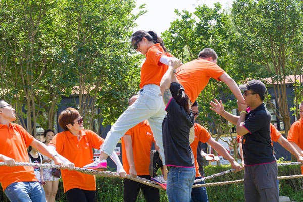 擰成一股繩,我們的力量足以支撐4個人的體重在繩上行走,在繩上行走的伙伴正象征著我們的領導層,他們需要相信伙伴們的力量,而底下伙伴的支持才是成功的關鍵!